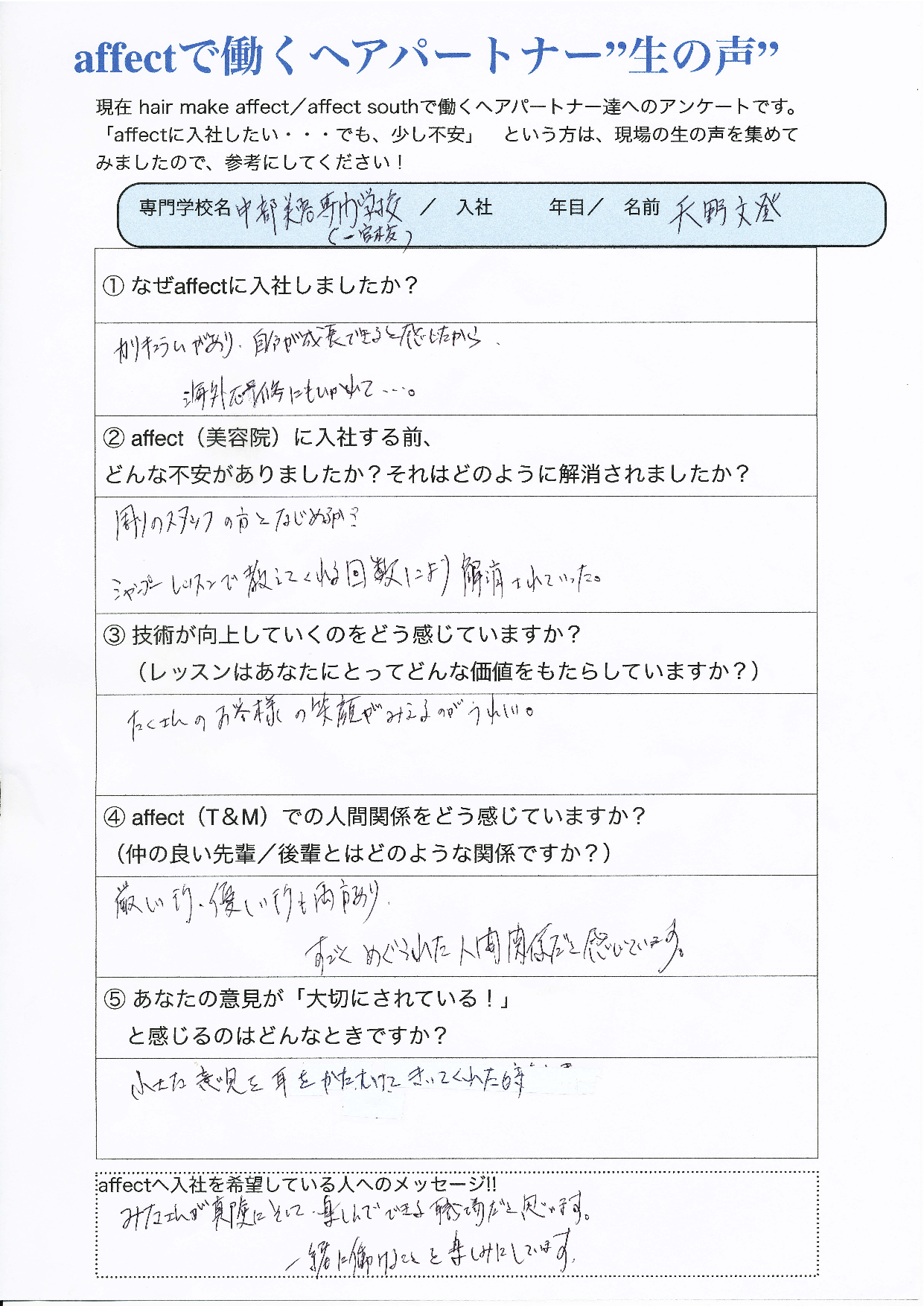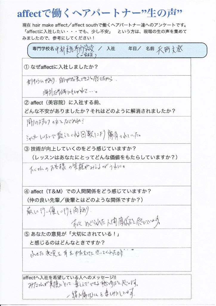 ② affect(美容院)に入社する前、どんな不安がありましたか? それはどのように解消されましたか?