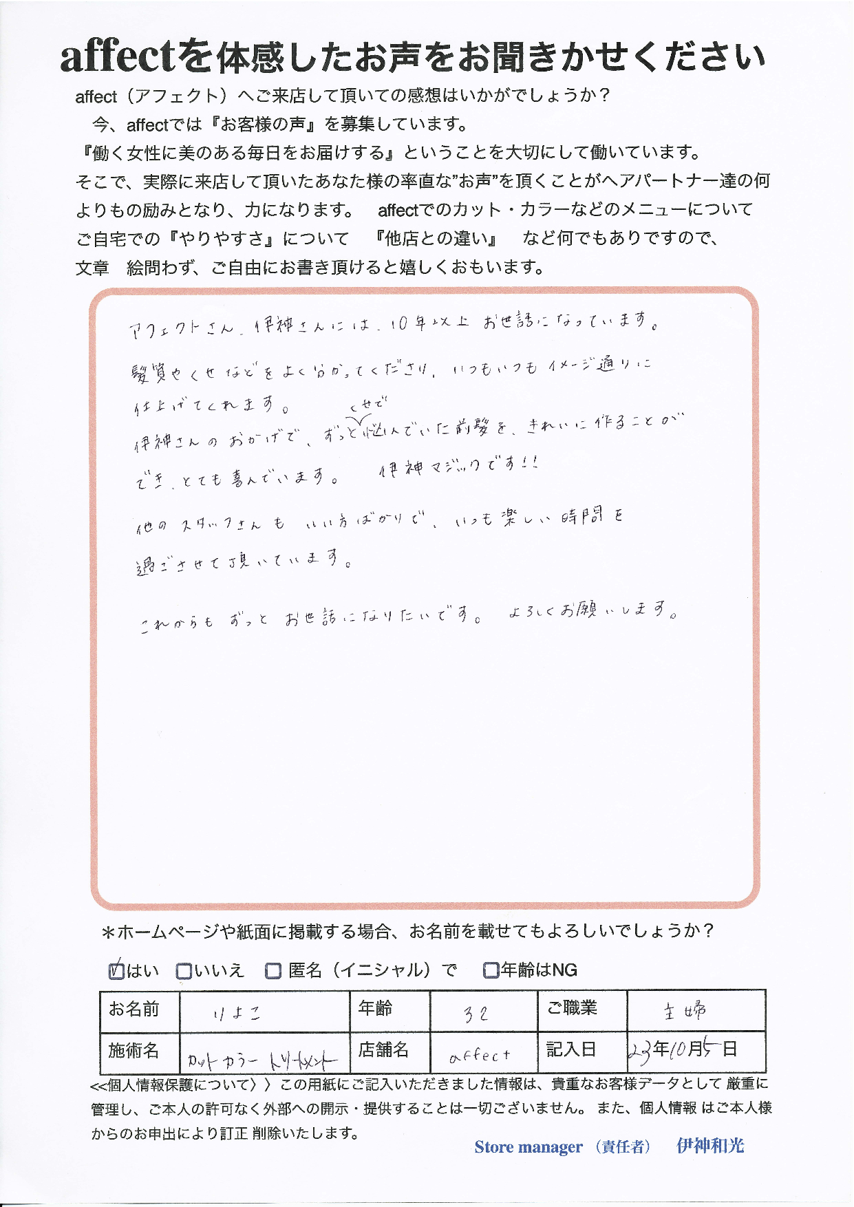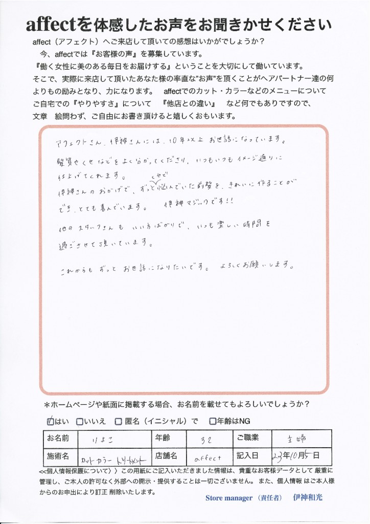 これからも、楽しいサロンで りよこ様のイメージ通りにヘアデザインが
