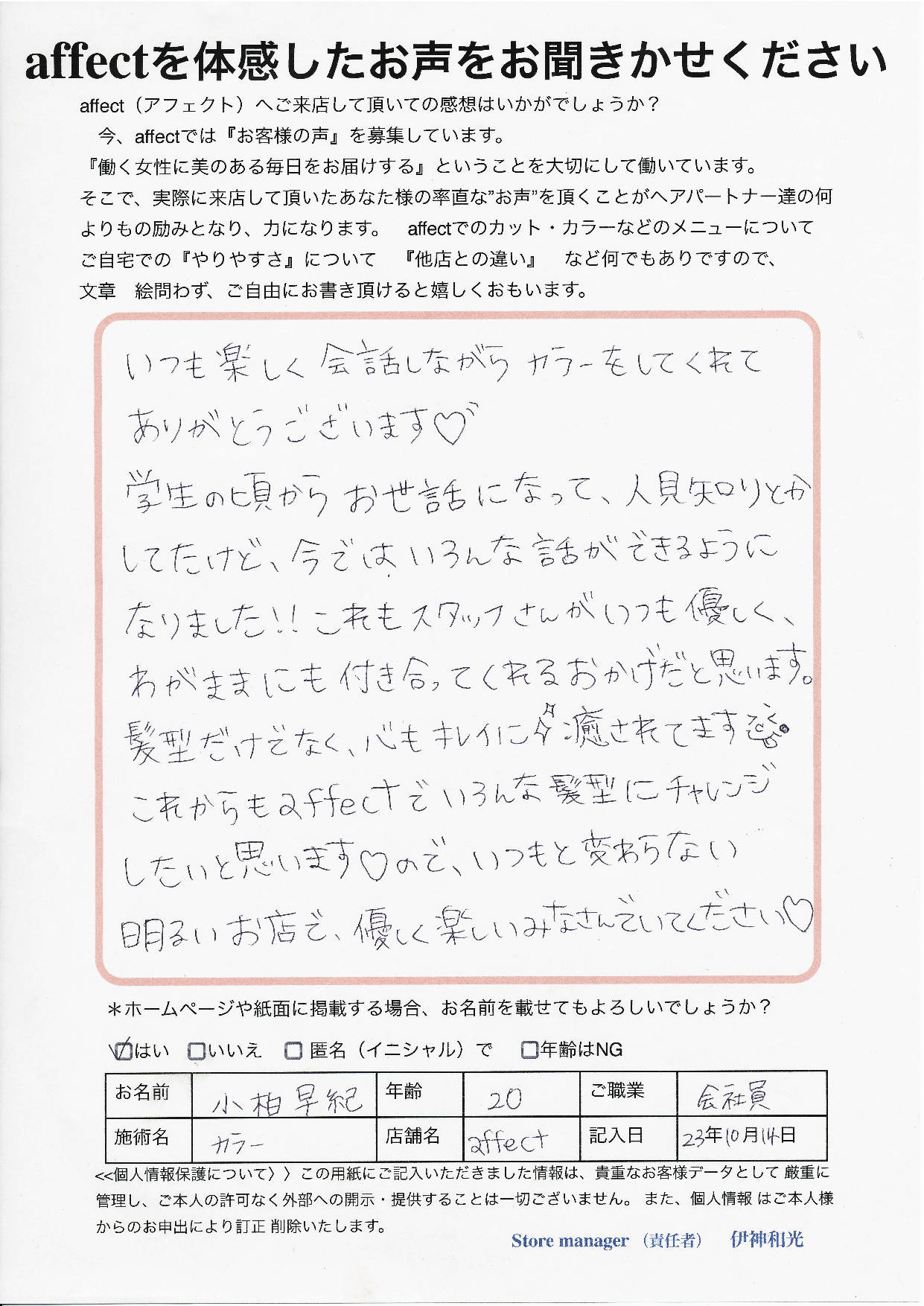 小柏様が色んな希望を伝えやすいように、優しく楽しいaffectいますね! どうぞ宜しくお願いします。