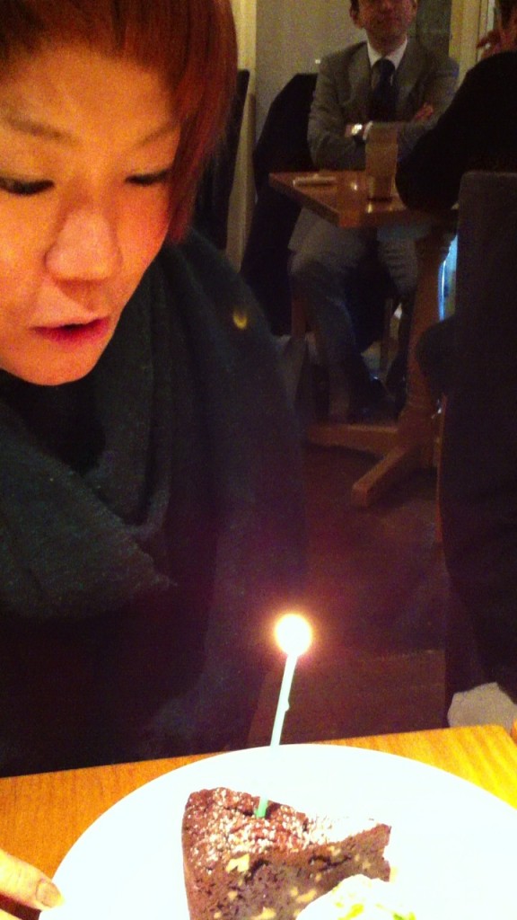 無理矢理 ケーキにろうそくをさしてもらい、記念写真 ”パシャリ”