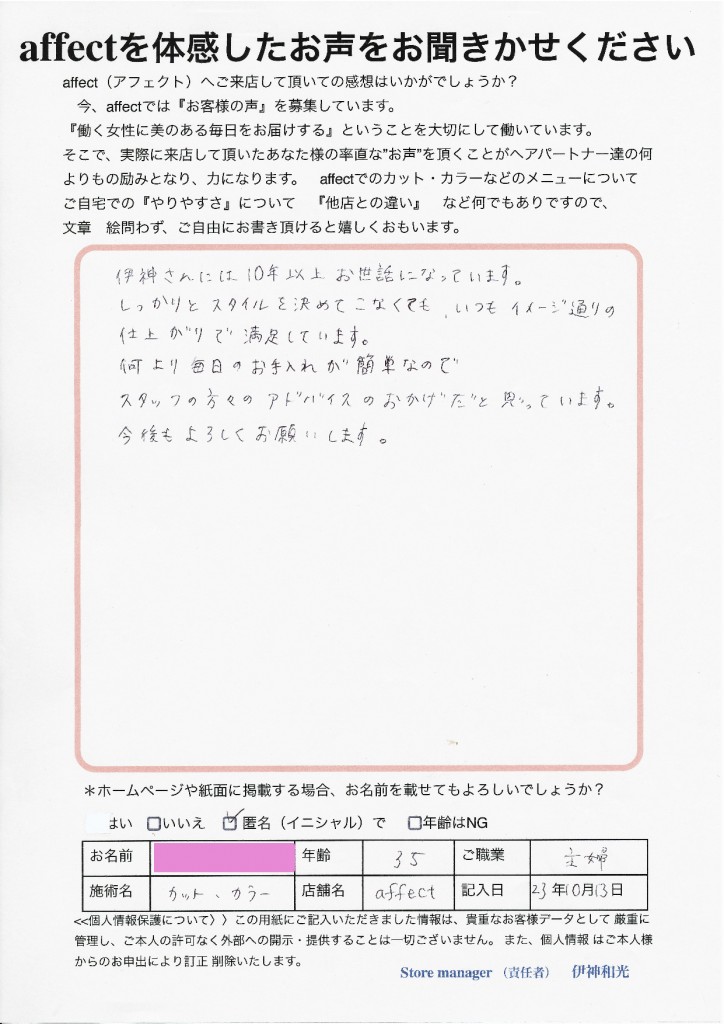 Y.K様とイメージの共有がaffectでなされていること、大変嬉しく思います。