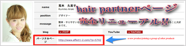 先日、WEB制作会社に依頼していた ヘアパートナーページ リニューアルが完成しました。