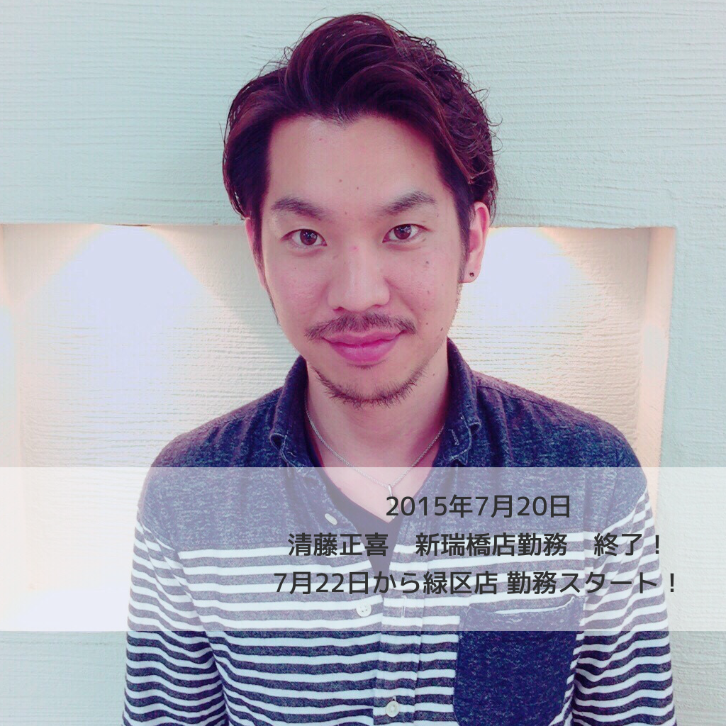 今日で(2015-07-20)で、スタイリスト キヨ こと、清藤正喜が新瑞橋店勤務
