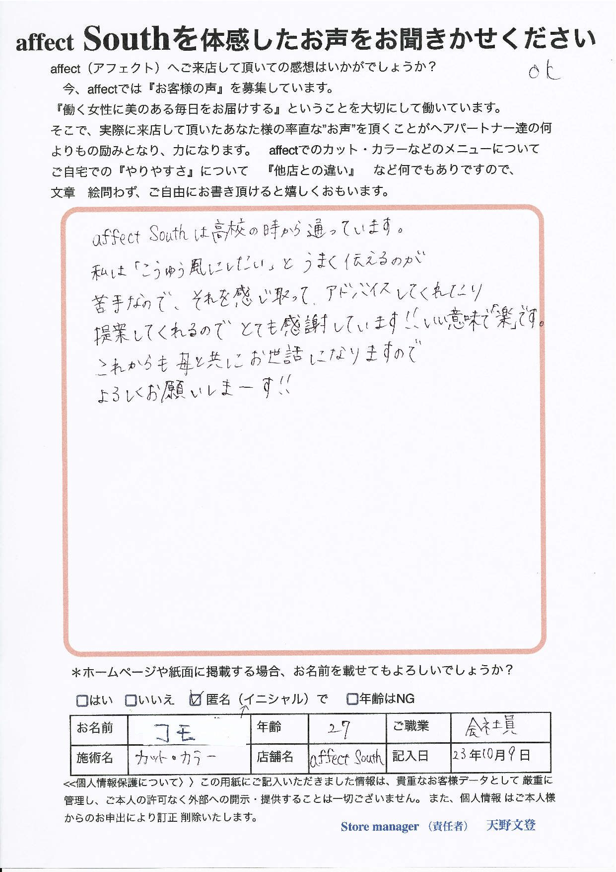 コモ様 高校生の頃からのご来店 ありがとうございます!!