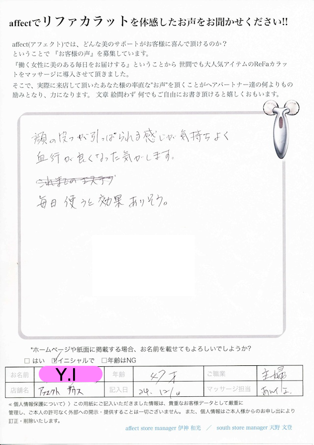 お名前 Y.I様 / Age 47歳 / 主婦 / affectsouth(アフェクトサウス) / /H24.12.4 / あんな(katagiri Anna)