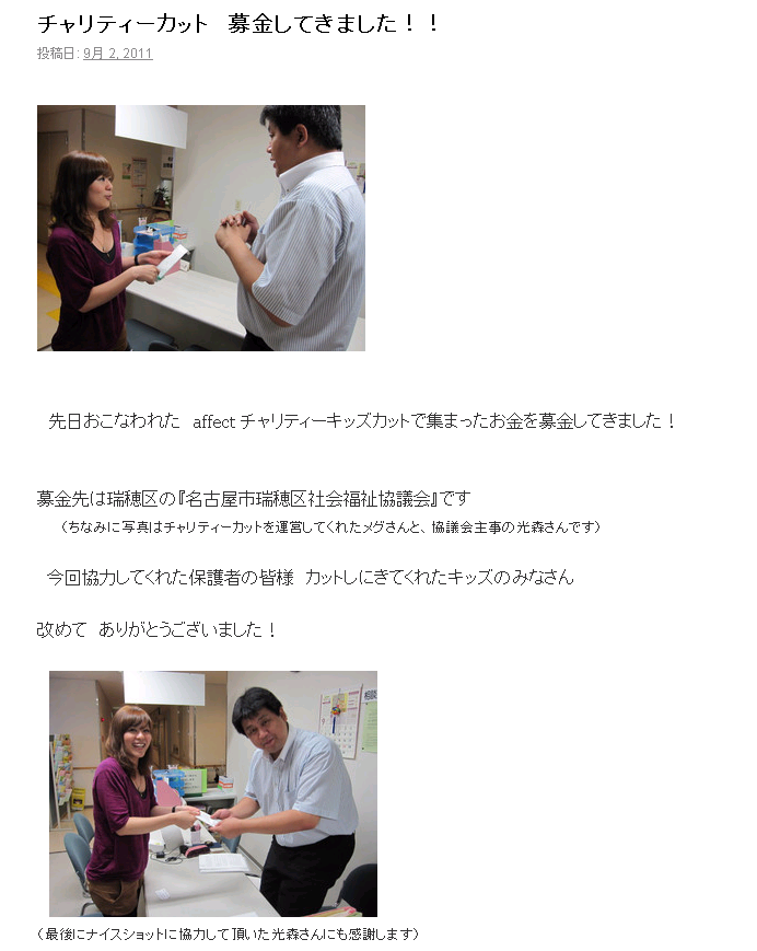 はい! 先日おこなわれたチャリティー キッズ カットで集まった募金を地元緑区の 社会福祉協議会に納めてきました!!