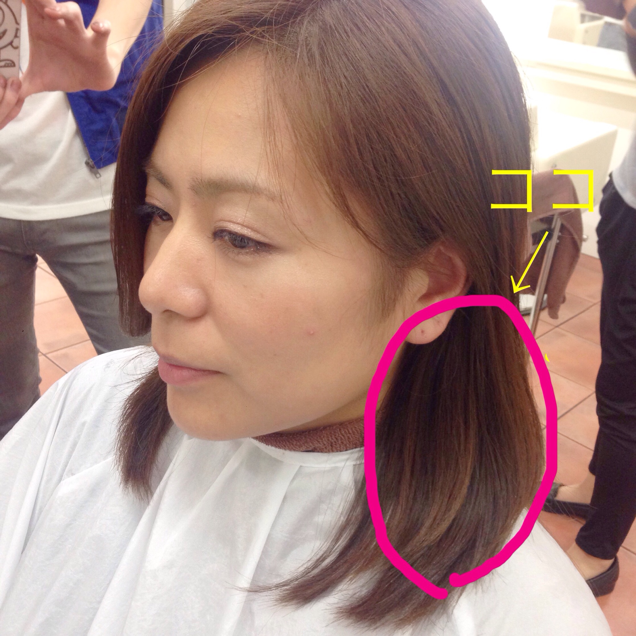 髪を結んだ時や耳にかけた時に