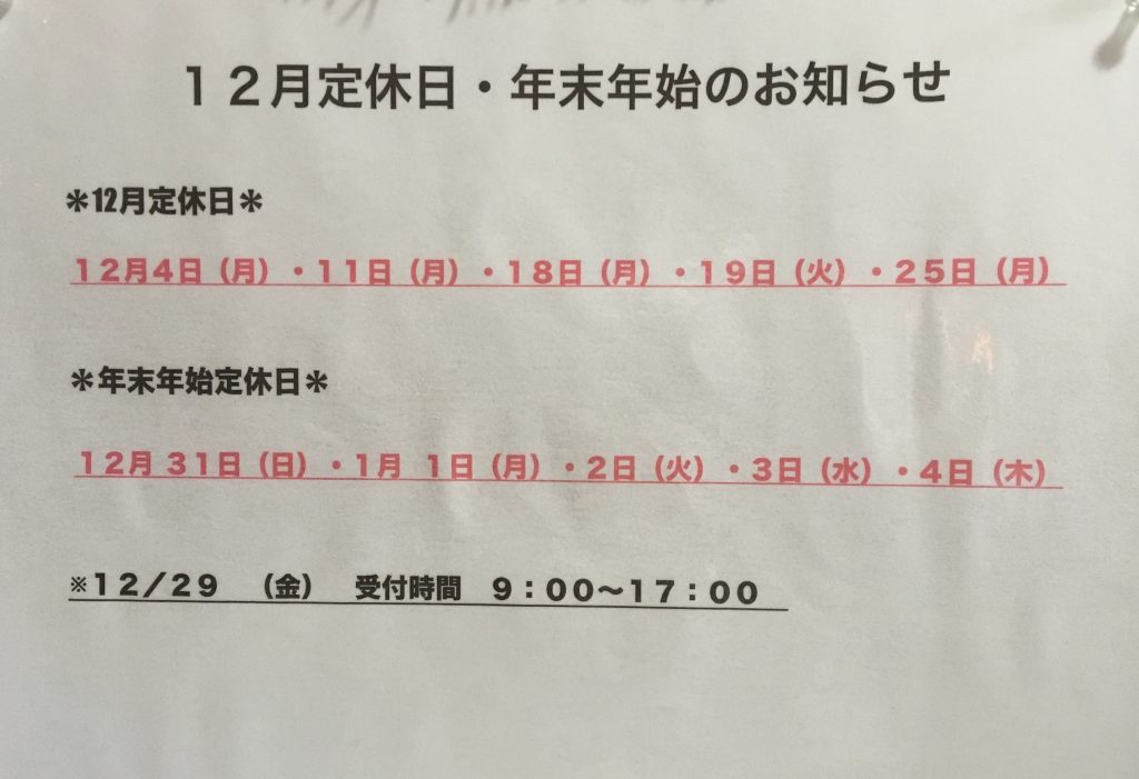 先日もご案内しました年末年始のお知らせです