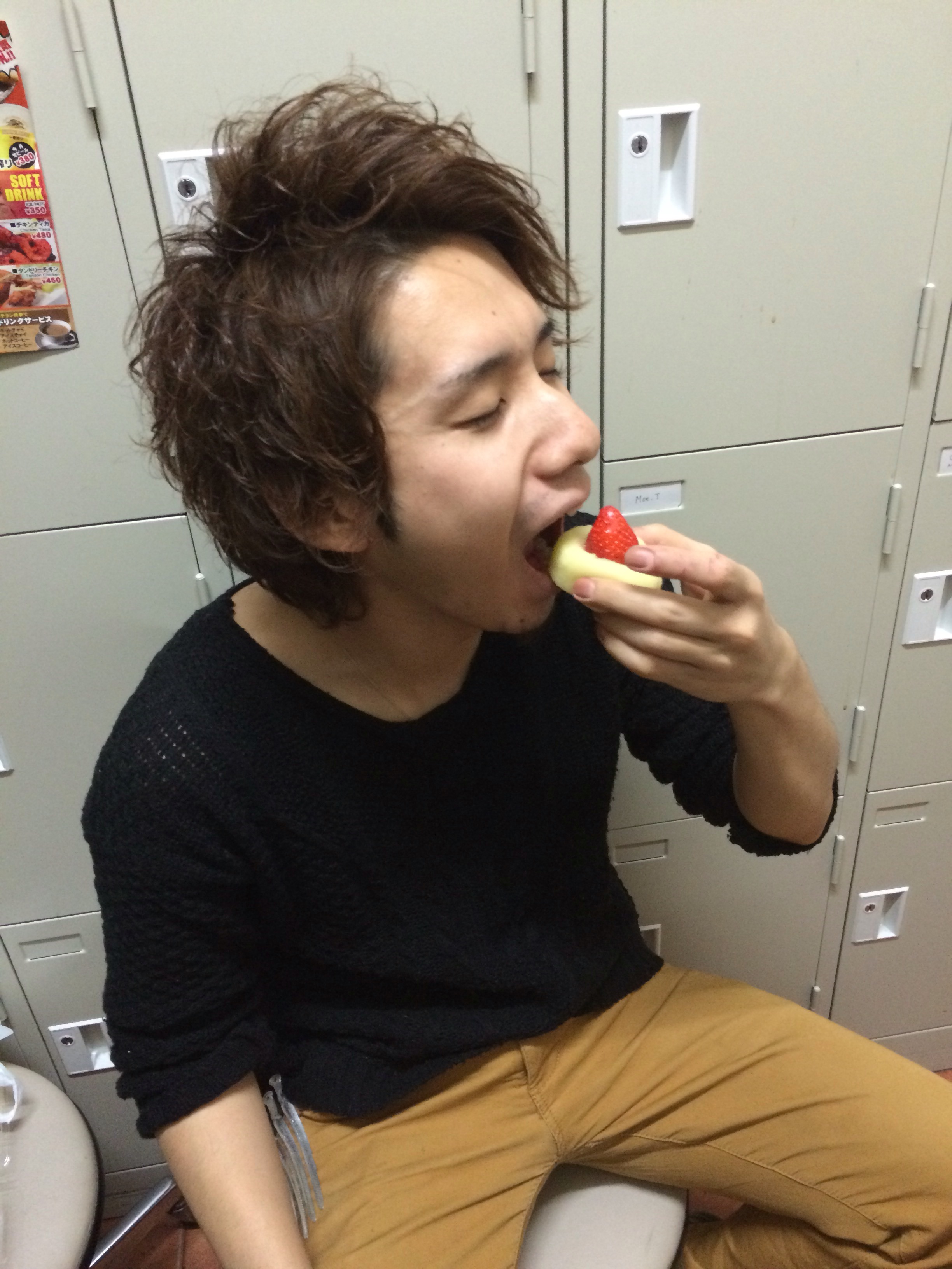 お客さんから頂いた苺大福を美味しそうに頂いてました◯