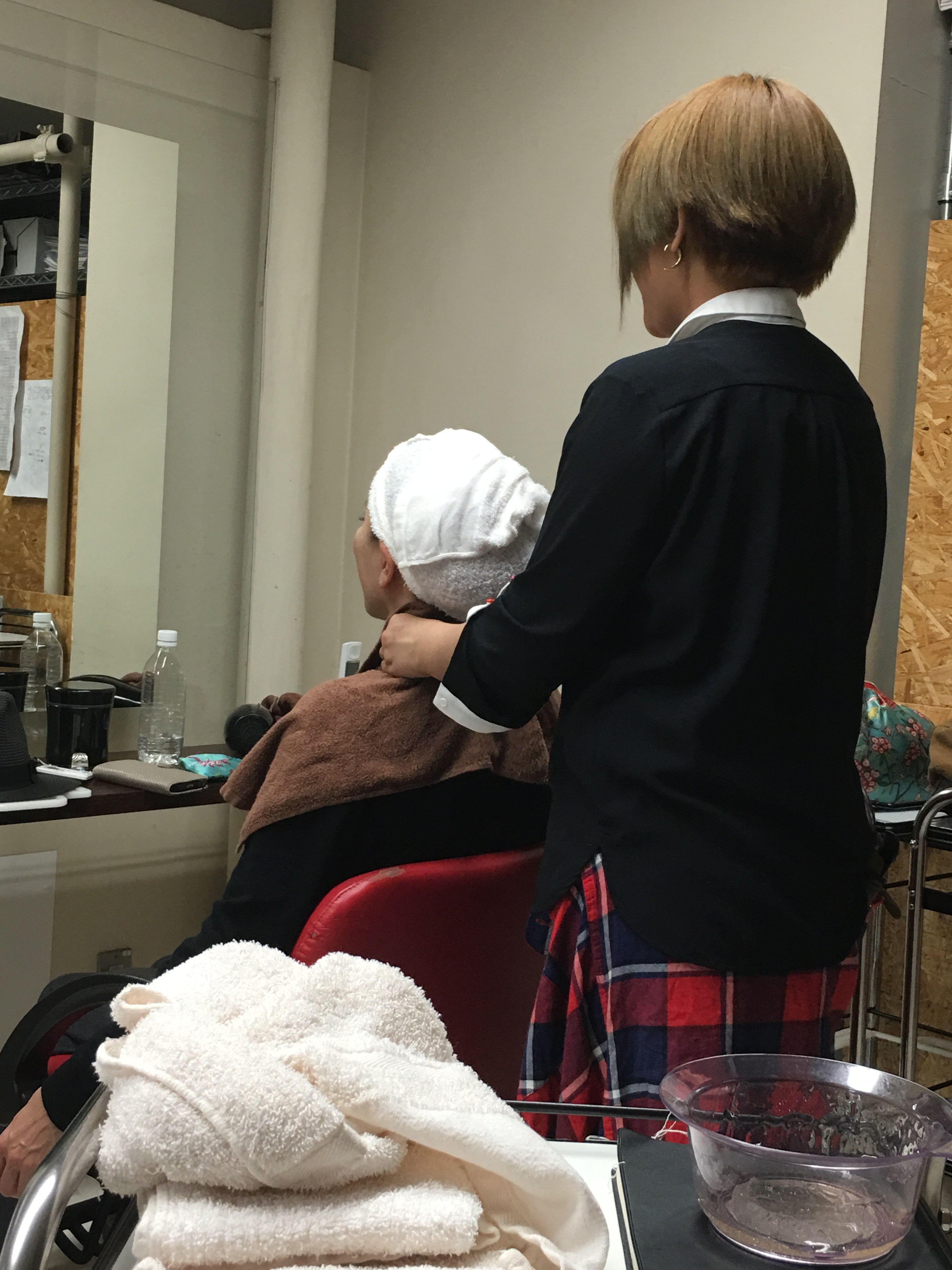 横で青山さんをモデルにベッドスパの練習を