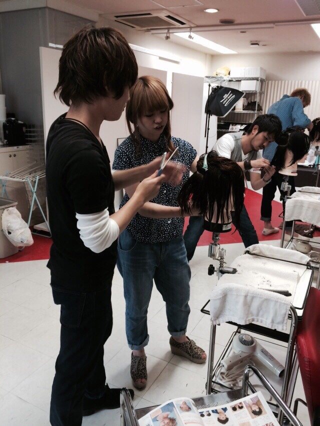 それは僕がヘアカタログを見ながらカットしていたら『あれ、これやっちゃったなぁ』と自分の中で気付き、すぐに『田口さん、あとはお願いします。』と田口マネージャーにボサボサになったウィッグをカットしてもらいました(笑)