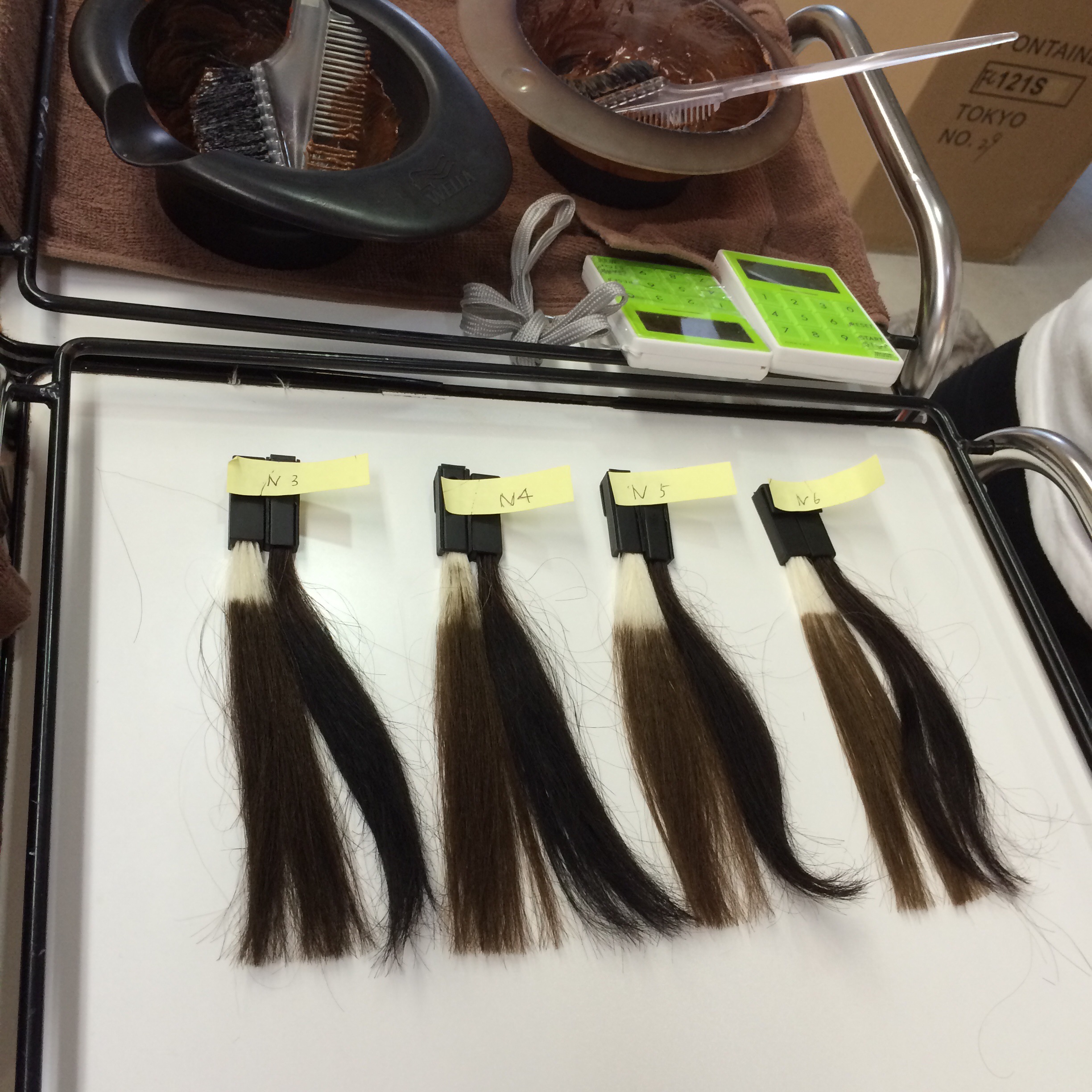 カラー剤も4種類使って調べることができました☆