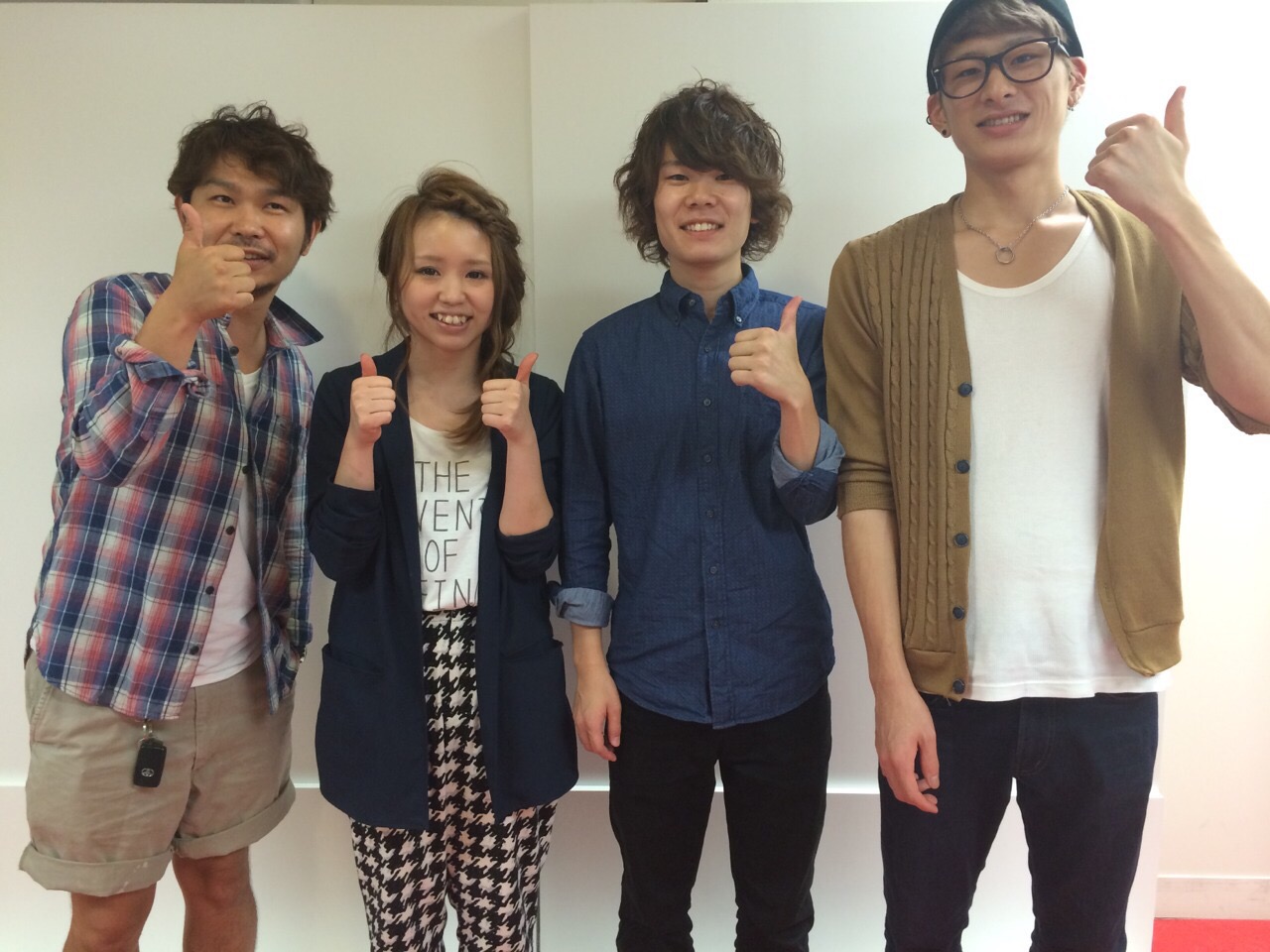 田口マネージャーはパーマをかけてオシャレヘアーになり、あみさんは前髪が伸び、しょうたは休んでしまって写真には居ませんが見違えるほど痩せ、僕はモサモサヘアーになり、しょうりはなにも変わらない。笑