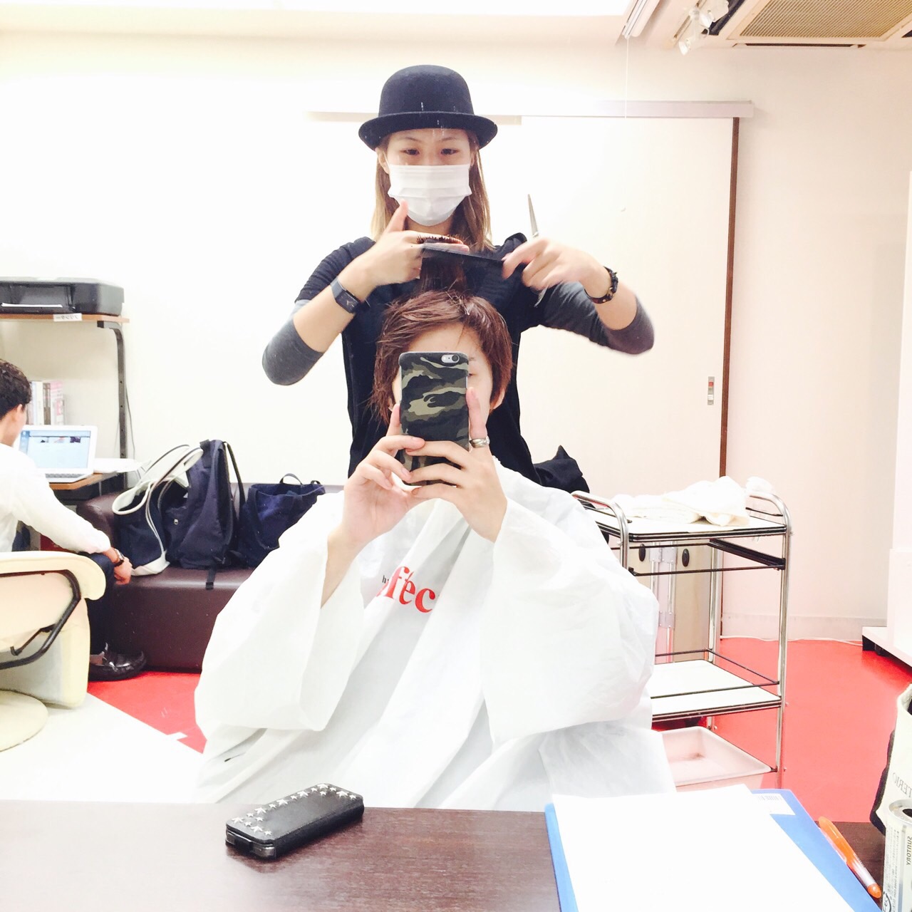 先輩の カナさん に髪の毛を切って頂いた時の写真です!!