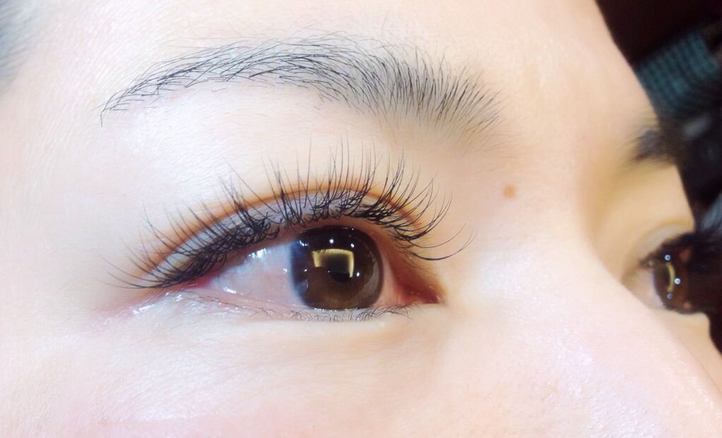 そして今回は前回より細いマツエクを選択してだんだん目尻にかけて長くなるデザインにしてみました