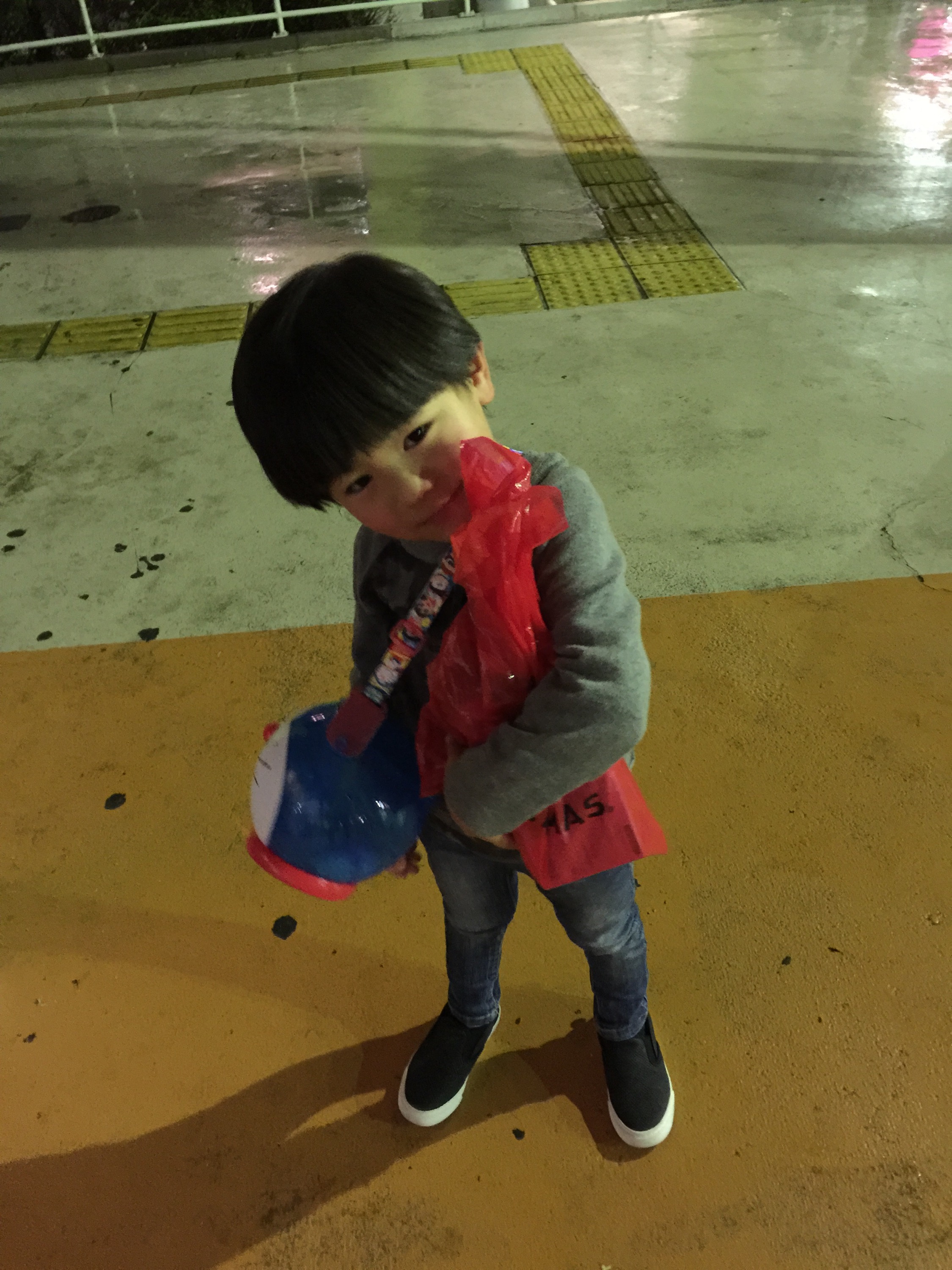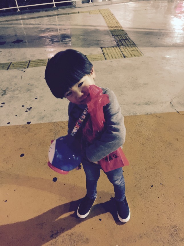帰りに空気砲を買ってあげたらかなり喜んでいました