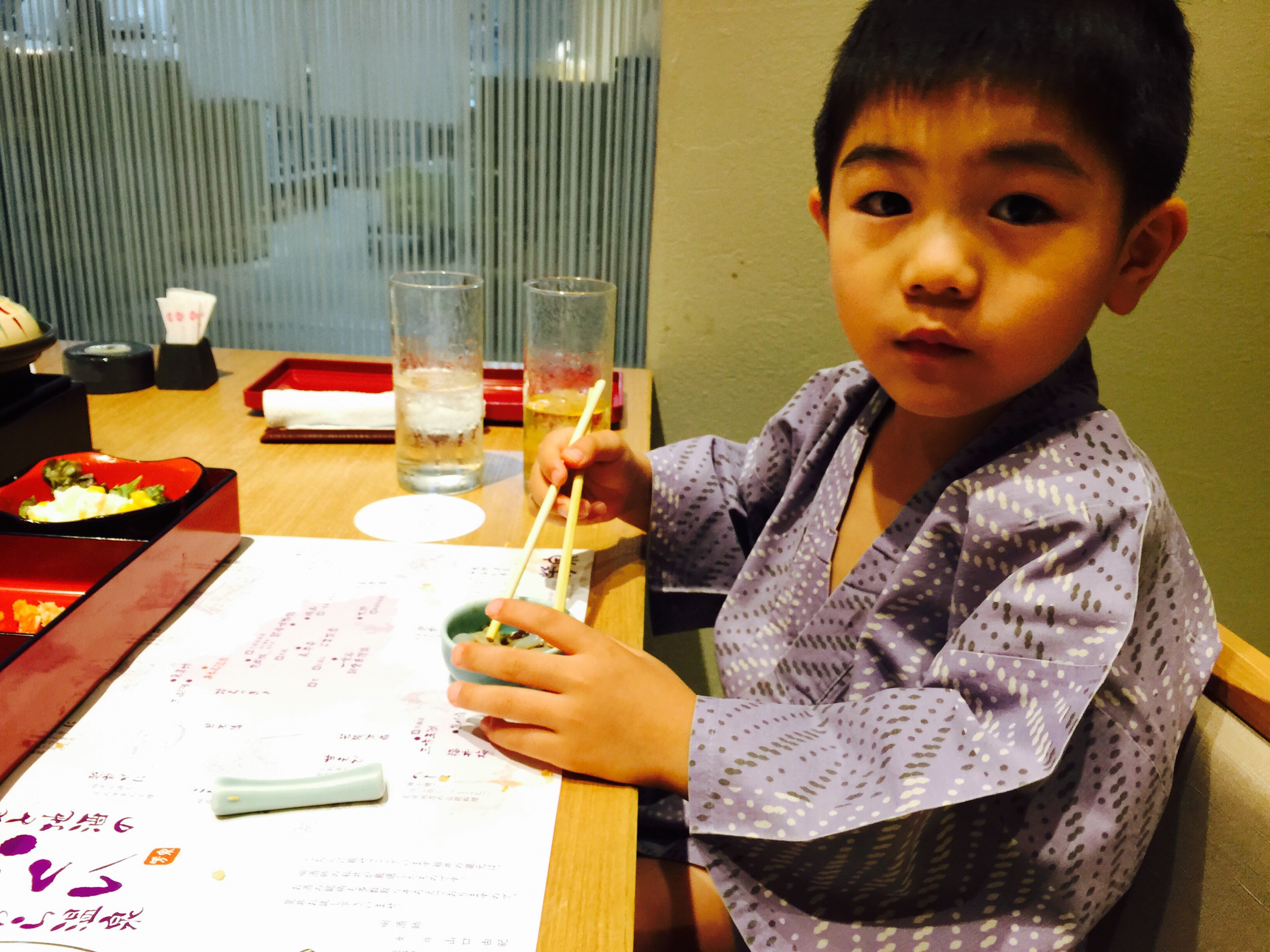え?本当に4歳児?なおっさんぶり(笑) 食べているのはイカ刺しですから