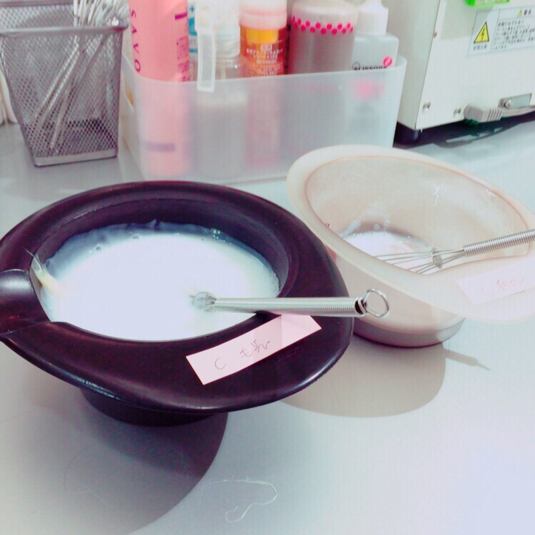 それは新しく生えてきた黒い髪の毛と、すでにカラーされている髪の毛とで薬を変えていきます(^o^)