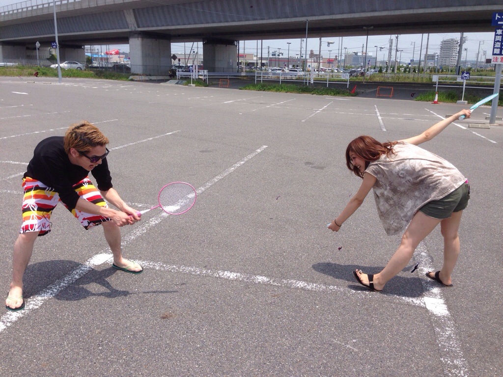 ビーチにつきそうそうバトミントン!