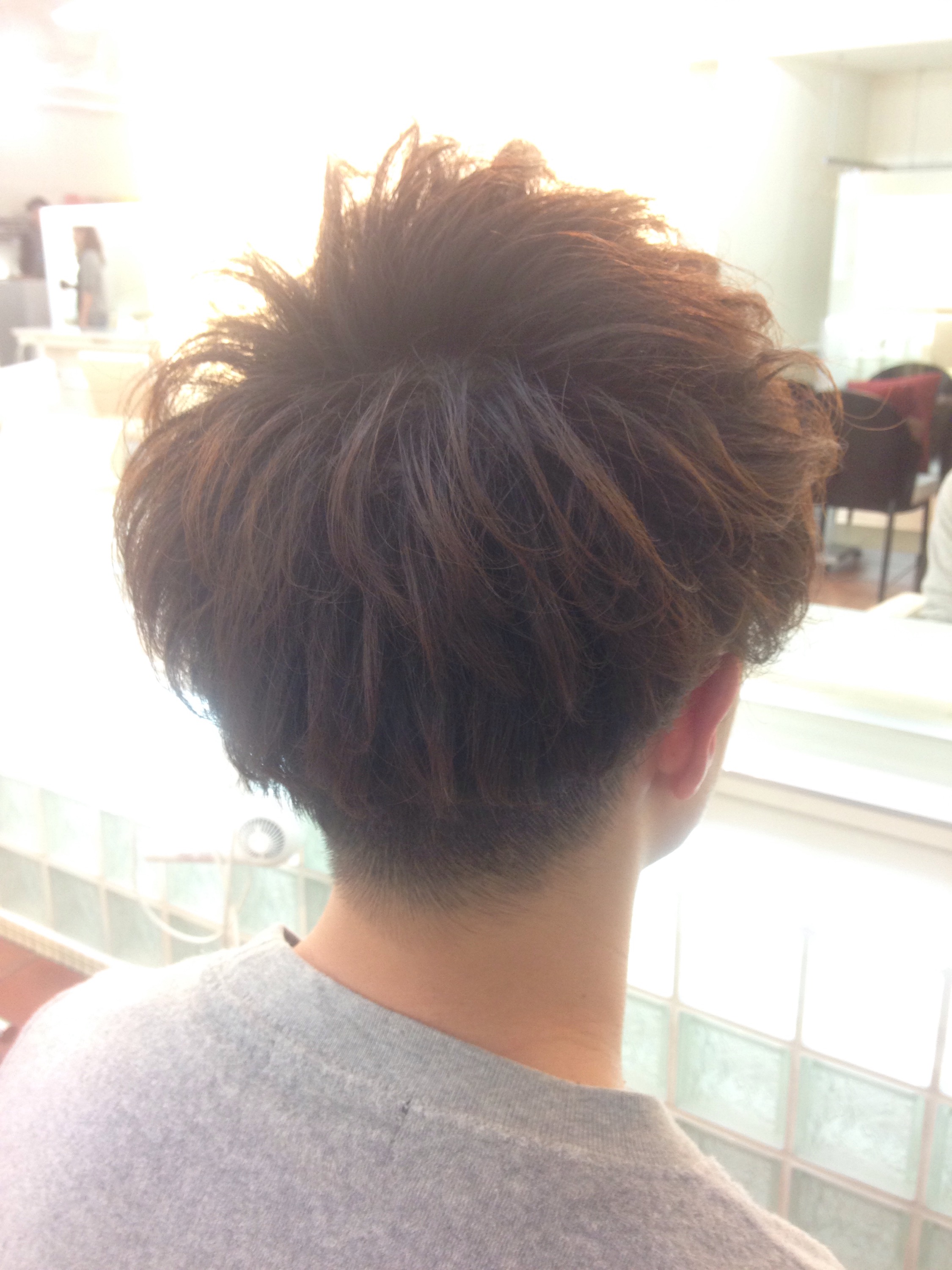 - トップと後ろは動きのある強目のパーマ
