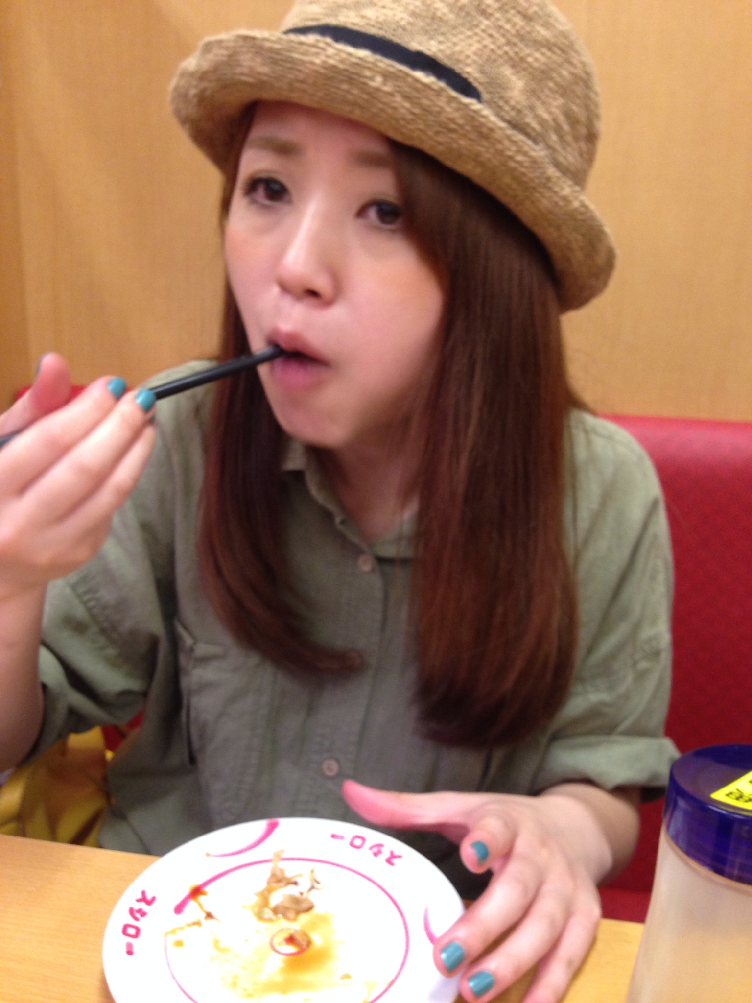 流れてるスシーを取る時の姿勢が気持ち悪かったみたいです(°_°)