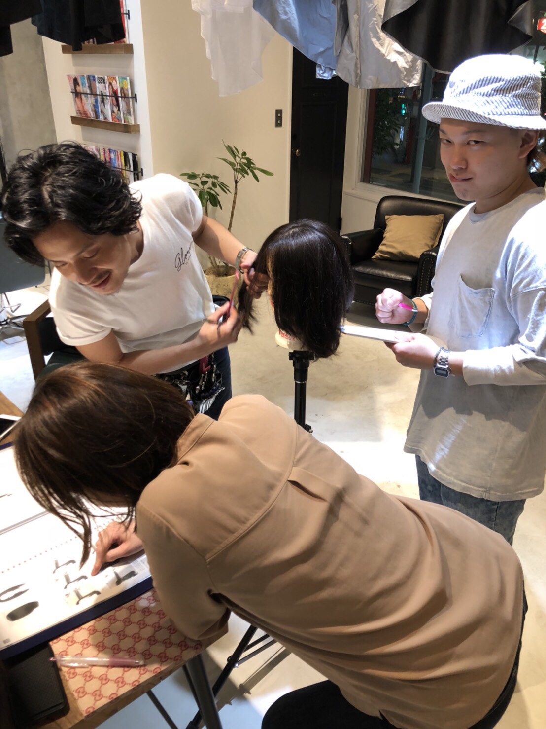 目的としては、カットの試験が変わるのでスタイリストみんなで項目を決めてスタイルも選んで後輩のスタッフに教えていくにあたってスタイリストが同じように教えていけるようにまず自分たちでカットして勉強しています!!!!!!