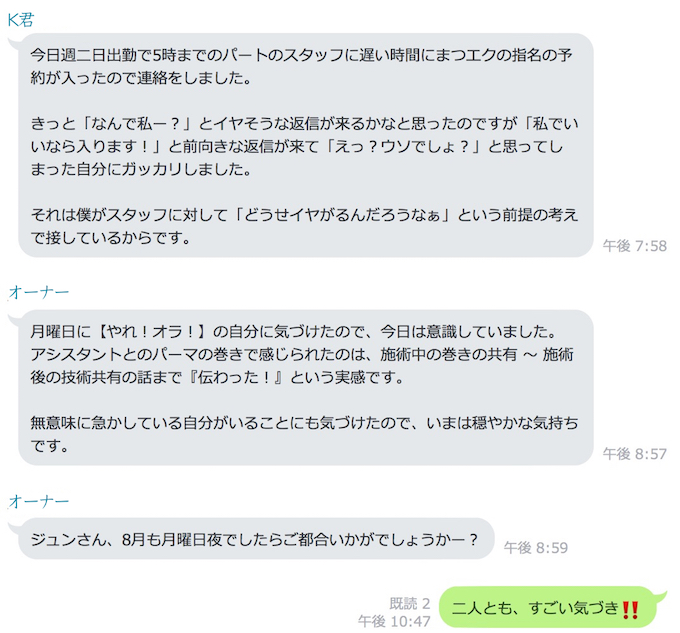 上記のLINEは《顧問サポート》を受けている美容院さんとのやりとりです。