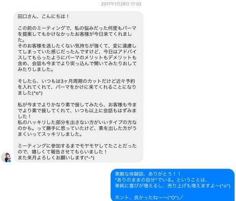 先日東京で開催した美容院の経営者・幹部のための”リアルミーティング”に参加してくれた野平さんが、素敵な体験メッセージをおくってくれたので、ご紹介させてください!