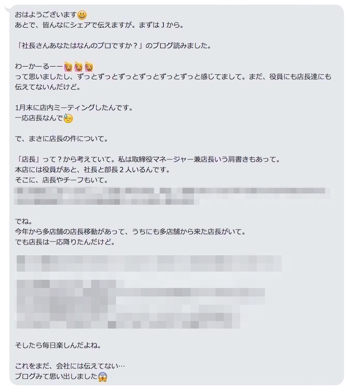 上記のような熱い記事を書くと、クライアントさんから熱いメッセージが沢山LINEでやってくる。