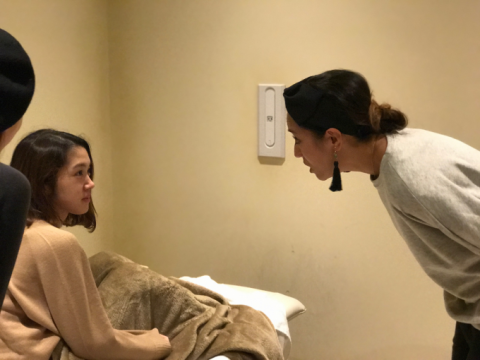 モデルさんのまつげをチェックしてるところ。