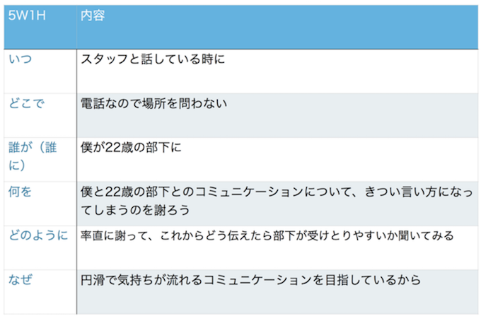 (行動した後に5W1Hを記入していきます)