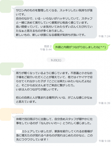 オーナーもシェアしていましたが、家族を紹介してくれるお客様が急に増えたのが流れるべきものが流れはじめたのかなと、この先にワクワクしています!