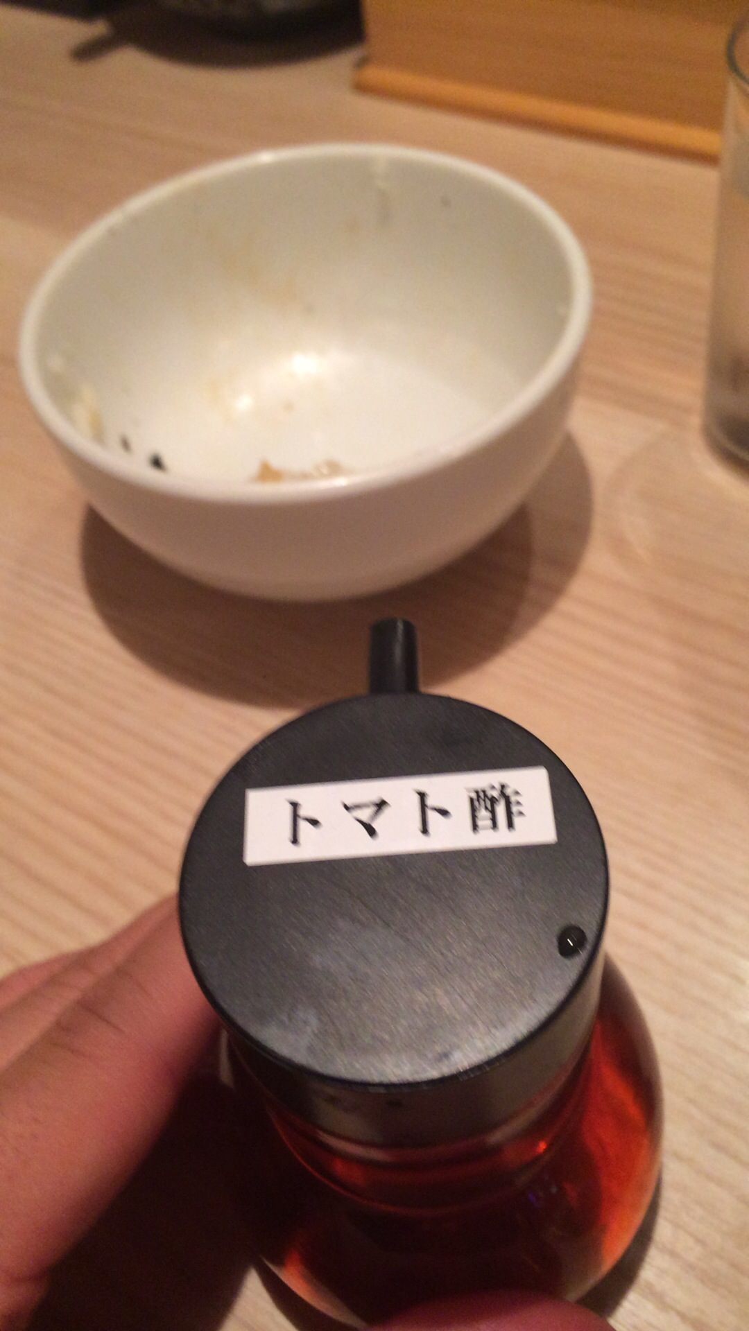 テーブルに置いてあるトマト酢