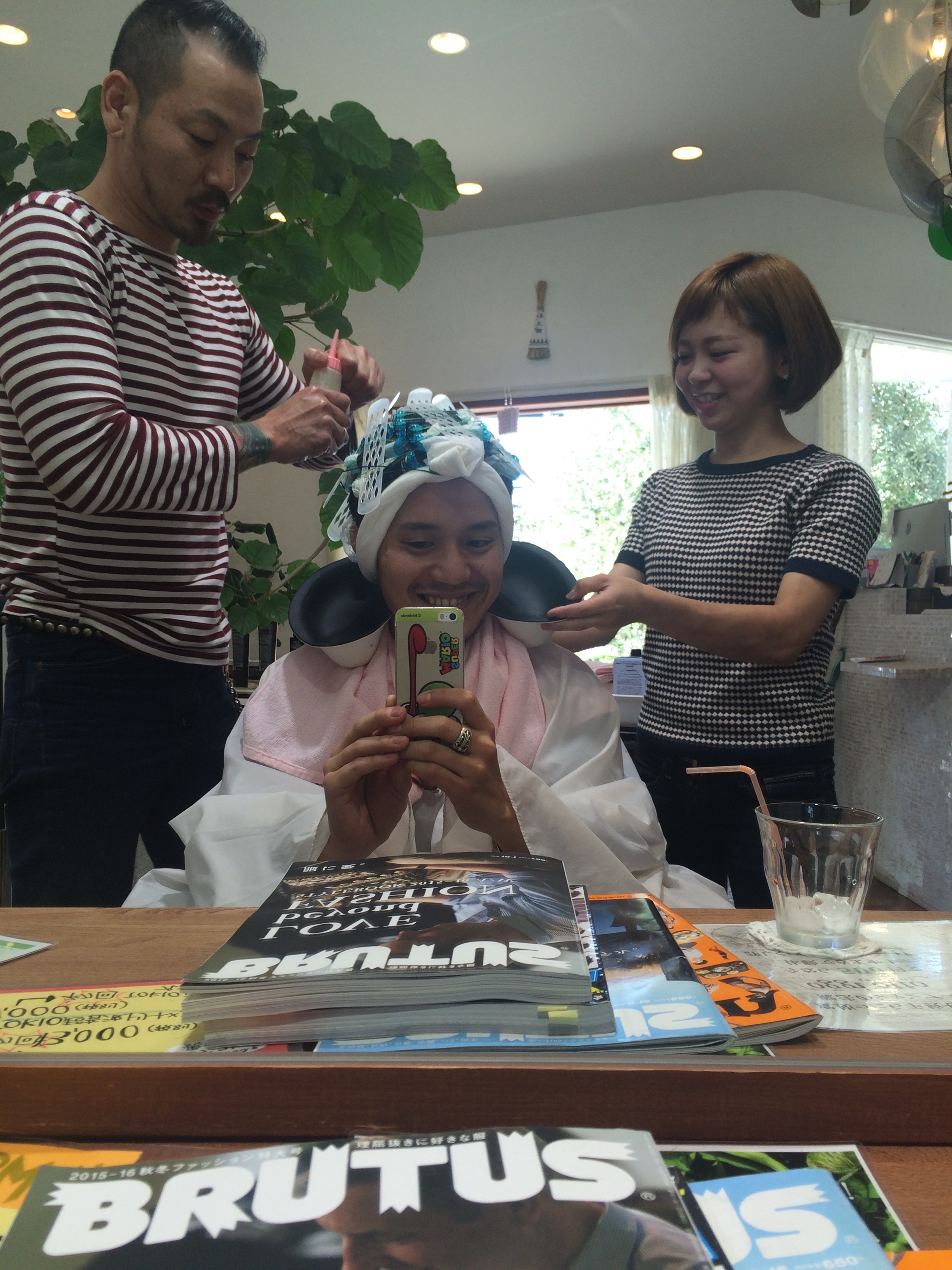 友達の結婚式前に友達の旦那さんとその友達がカットしに、きてくれて