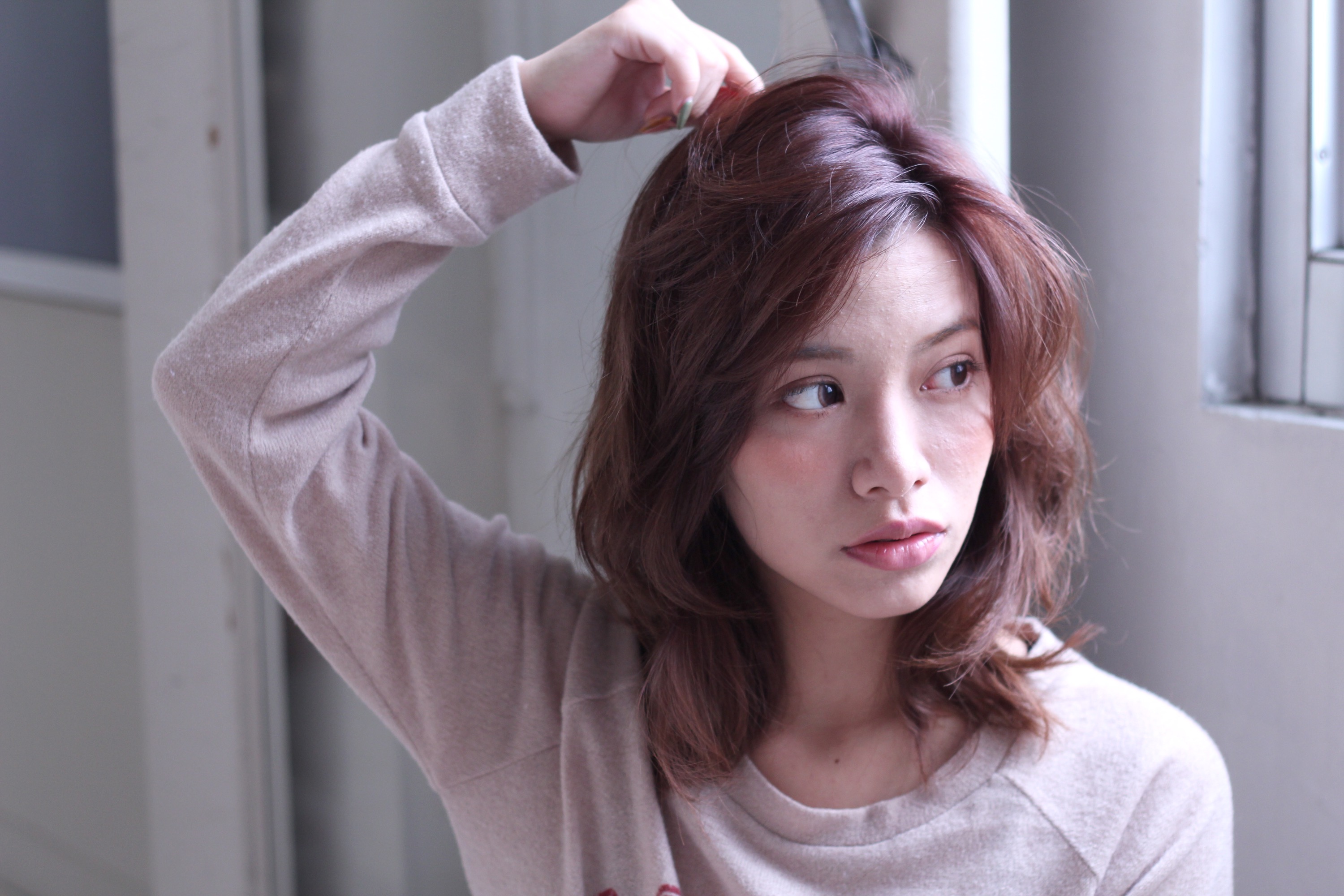 カットは無造作に、かきあげたりして動きがでるように