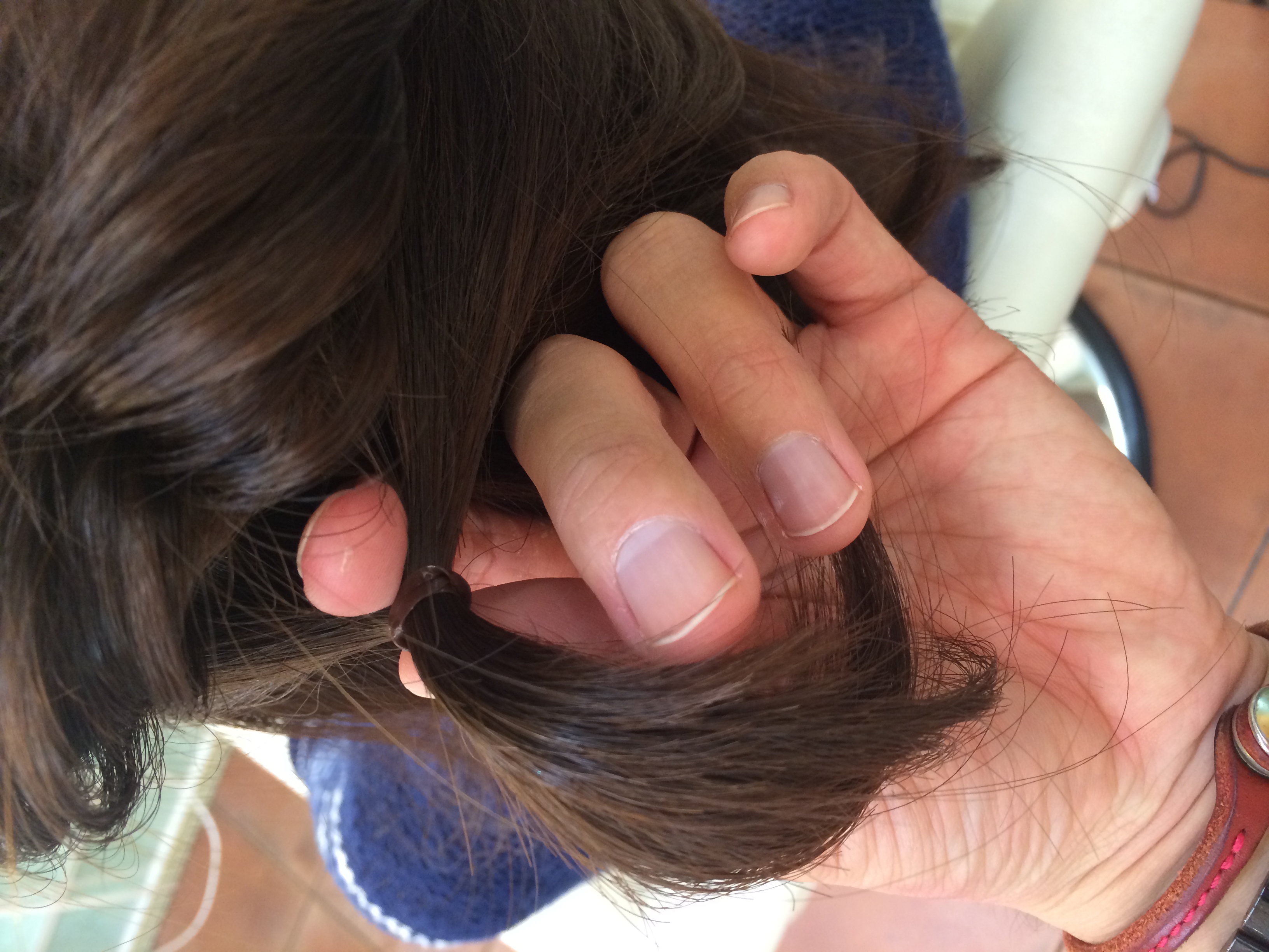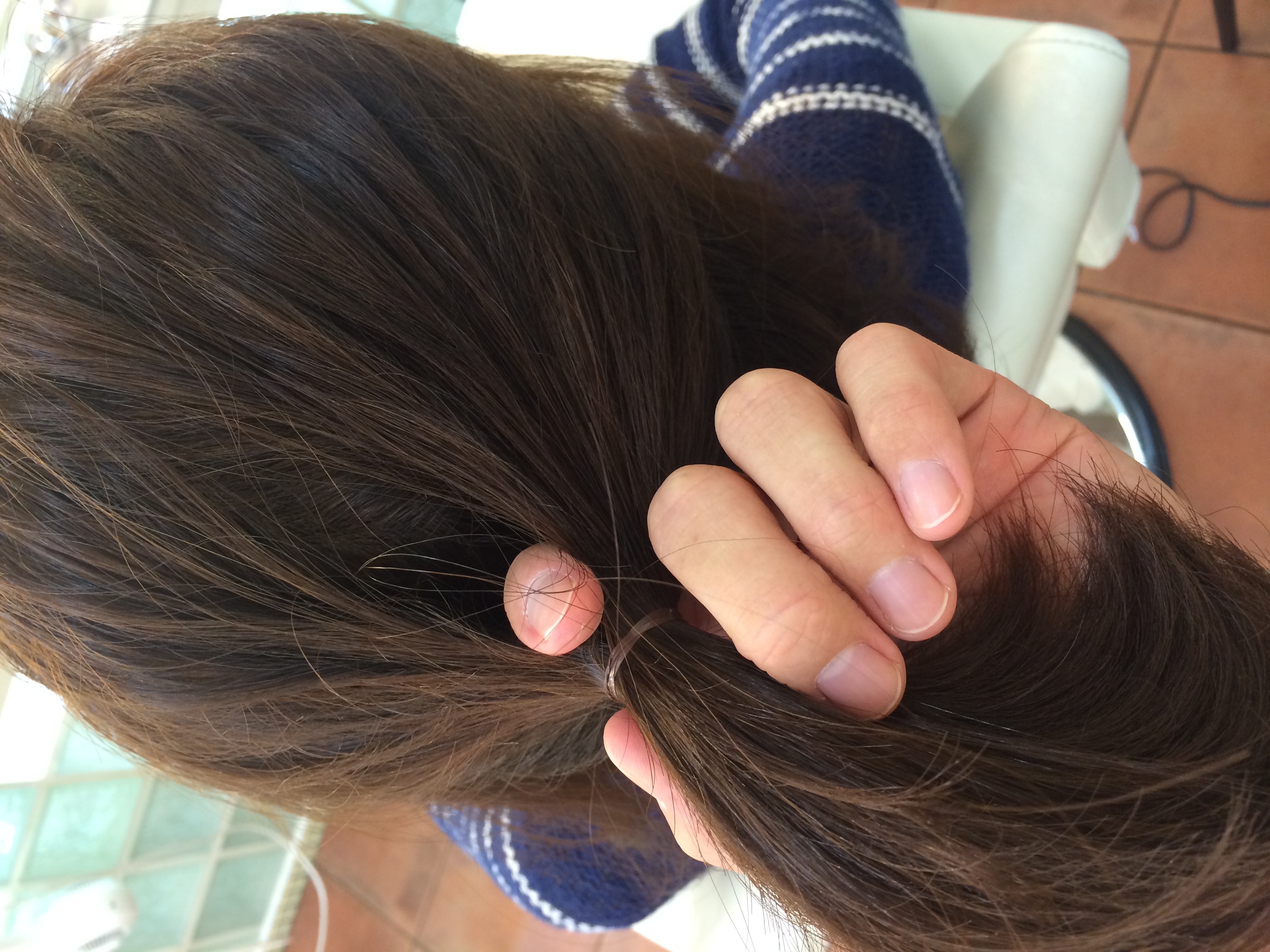 イメージは、ティッシュペーペー3枚分くらいの髪を引っ張ると・・・