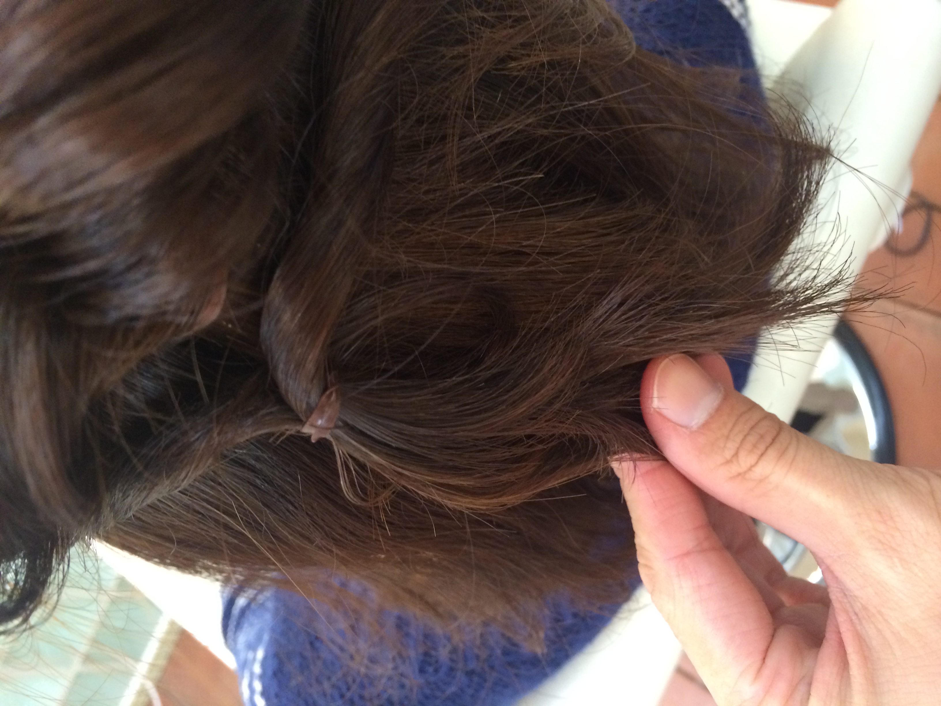 そして、ここから髪の毛をちょっとづーつひっぱります!部分的に。くるりんとなってるとこ、トップのボリュームがほしいところ等。