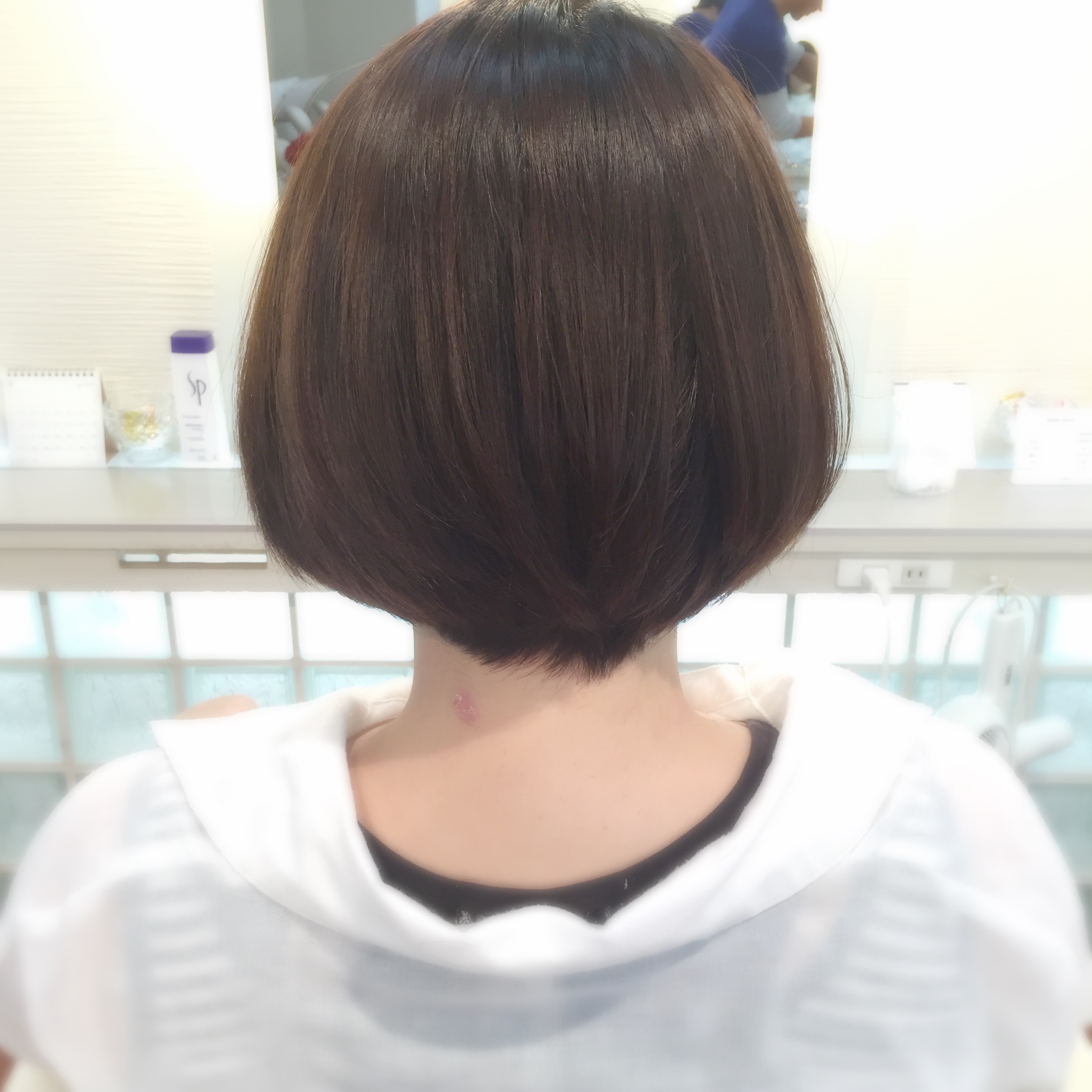たまに乾かさない時もあるとの事だったので、収まり、しばらく切りに来れない事を考慮して後ろはなるべく詰めました。