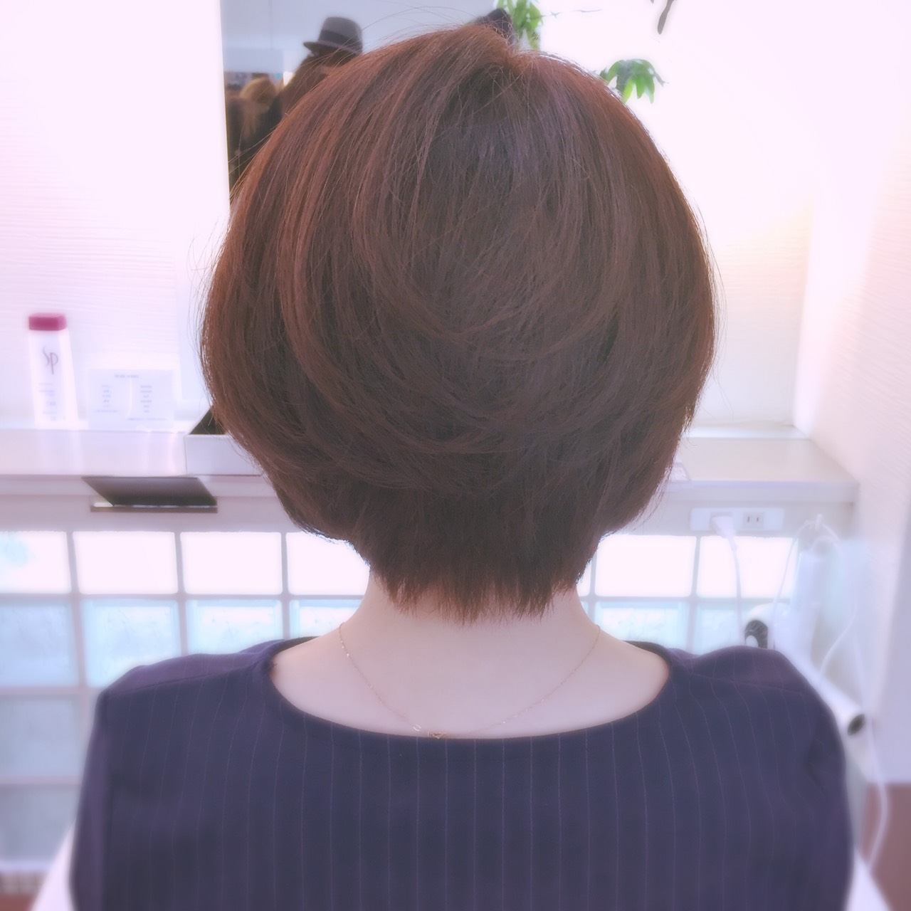 けっこーなロングですよね!イメージの写真も持って来てくれて大人なツヤのあるショート!ってスタイルでした。
