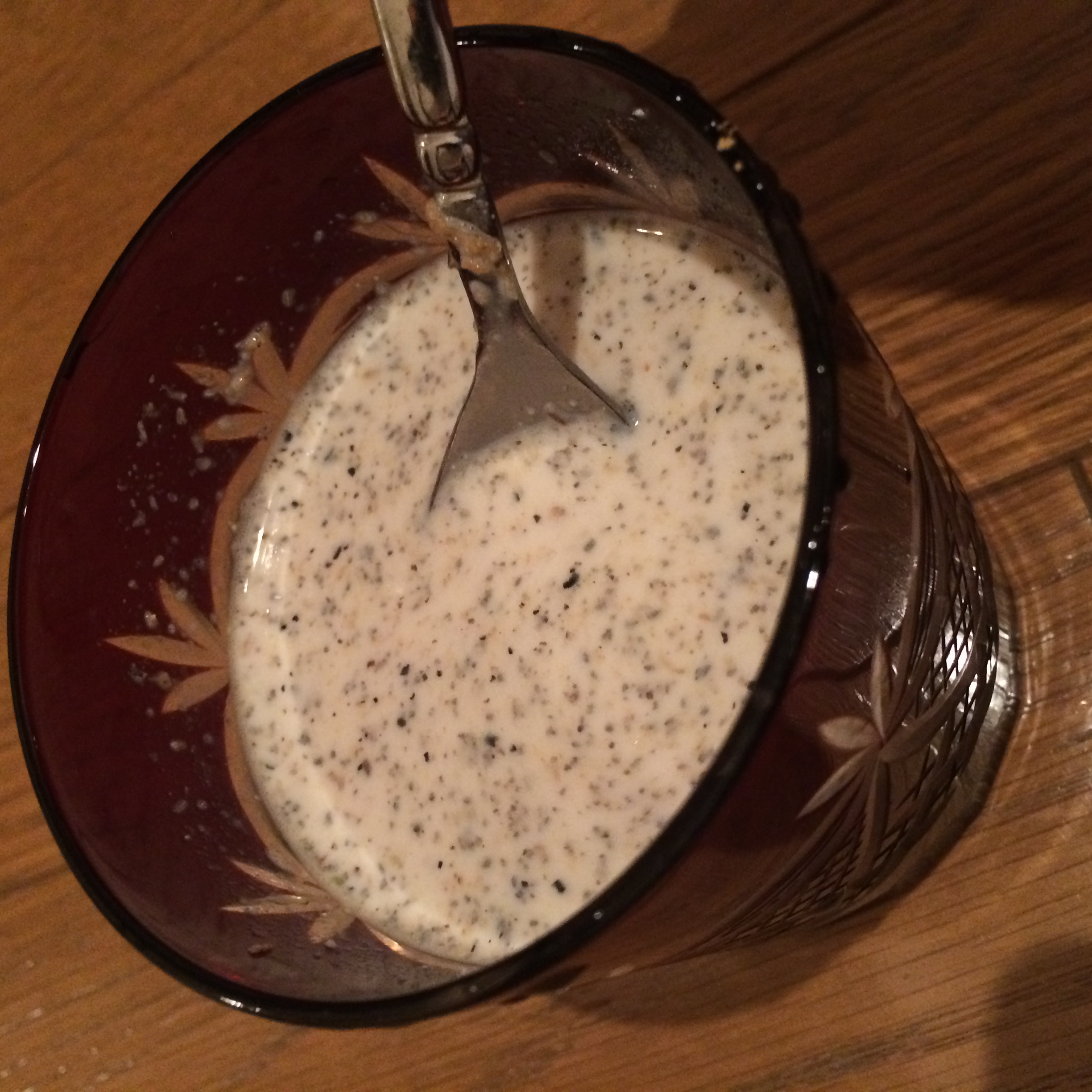 この黒っぽいつぶつぶがなにかの植物(適当だなw)で、食物繊維が豊富で腸によく、お通じがよくなるみたいです!